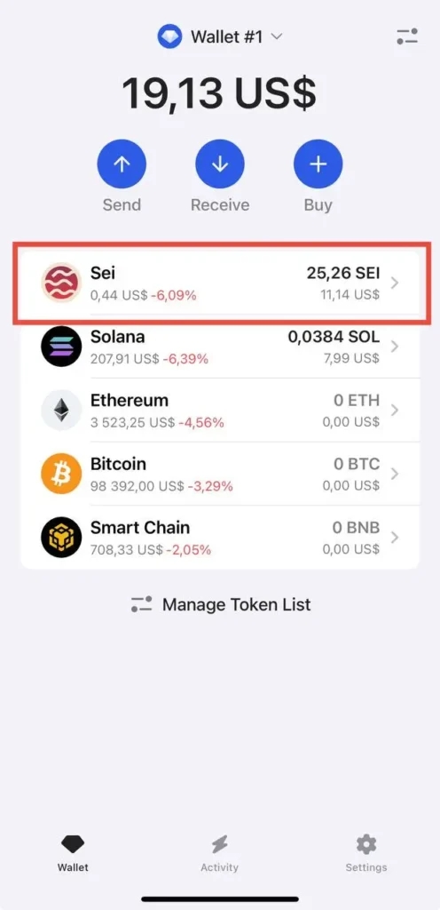 Great! You can now manage your staking in the main menu’s Sei section. Click on Sei to see details.