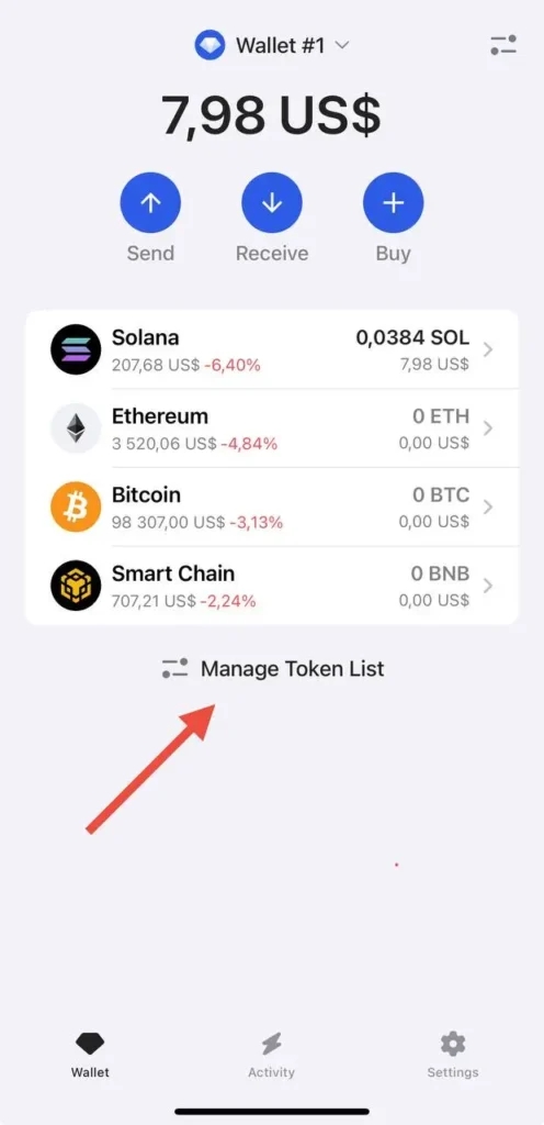 Go to Manage Token List.