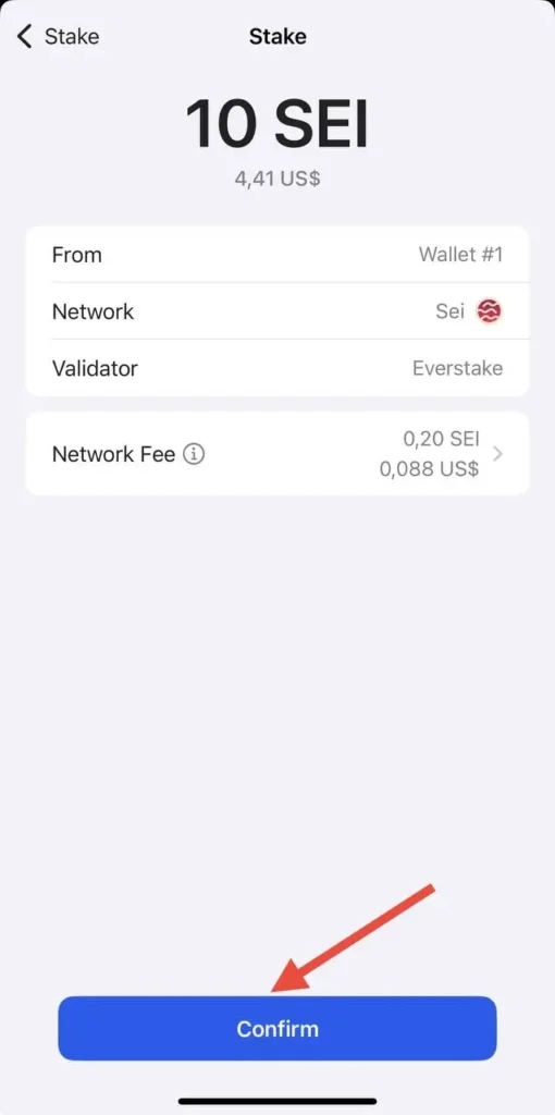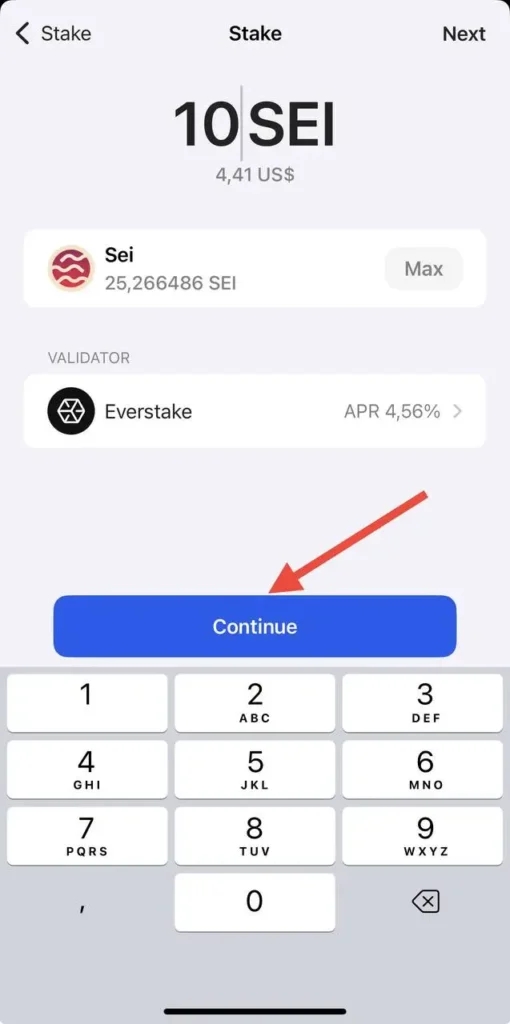 Read the info about SEI staking and click on Stake.