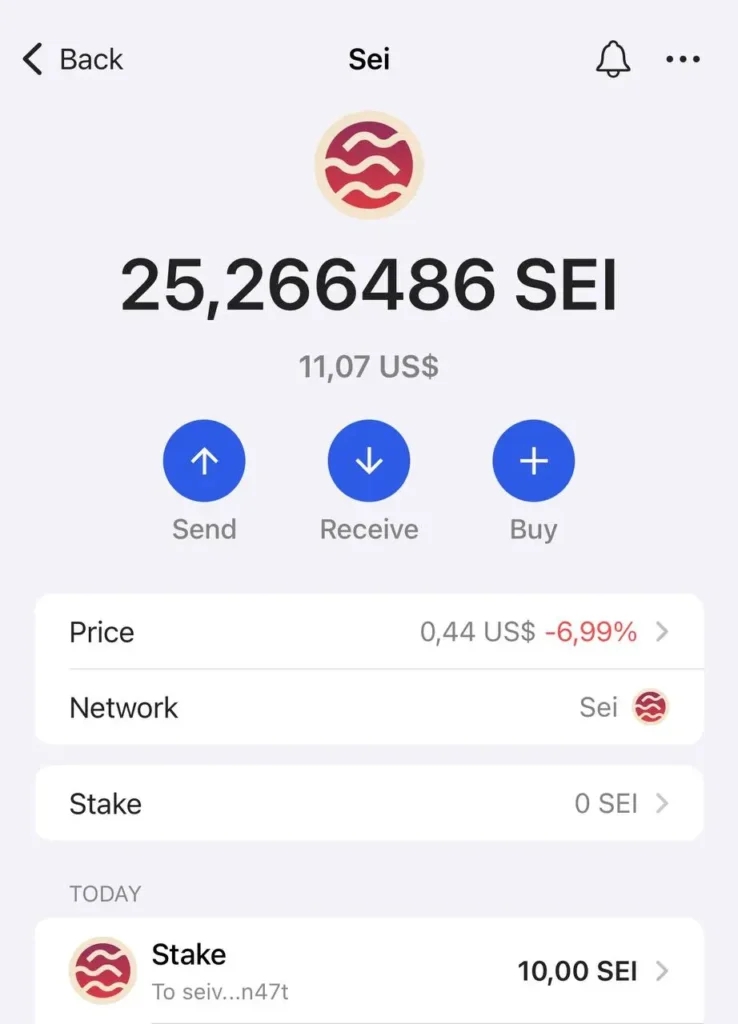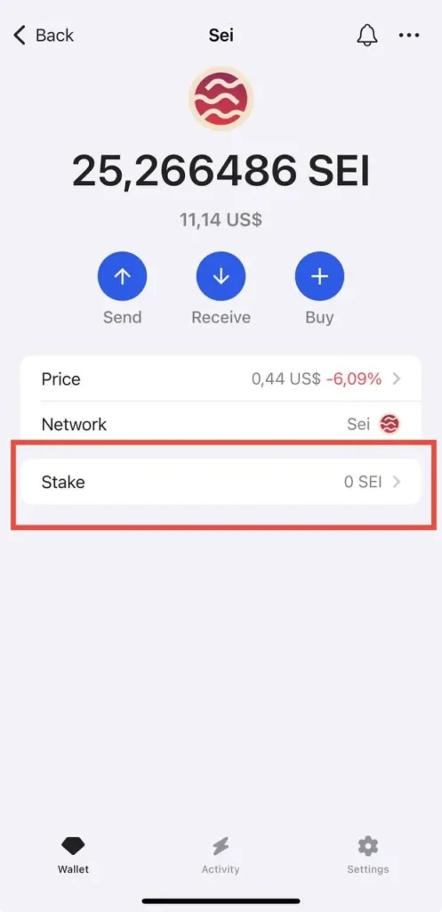 Now click on SEI to start staking.