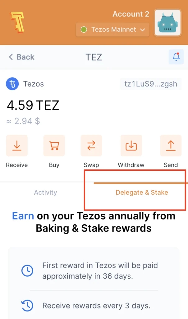 Tezos holders could delegate their XTZ to a baker (validator) without transferring ownership.